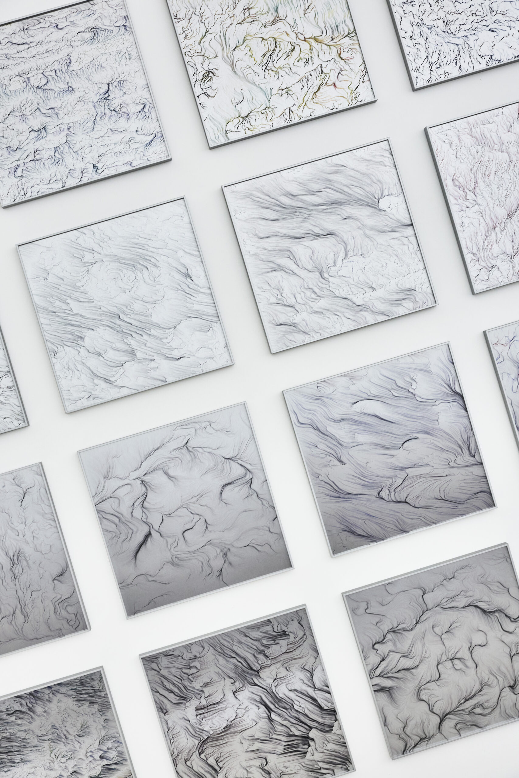 Each artwork represents a further development in Mauro’s evolving language, shaped by the dialogue between technology, code, and traditional engraving techniques. Each artwork surface invites prolonged observation, encouraging viewers to lose themselves within their depth. While seemingly abstract, the artworks have an exceptional softness to them, feeling familiar yet distant, embedded in the expressive structures of human perception.