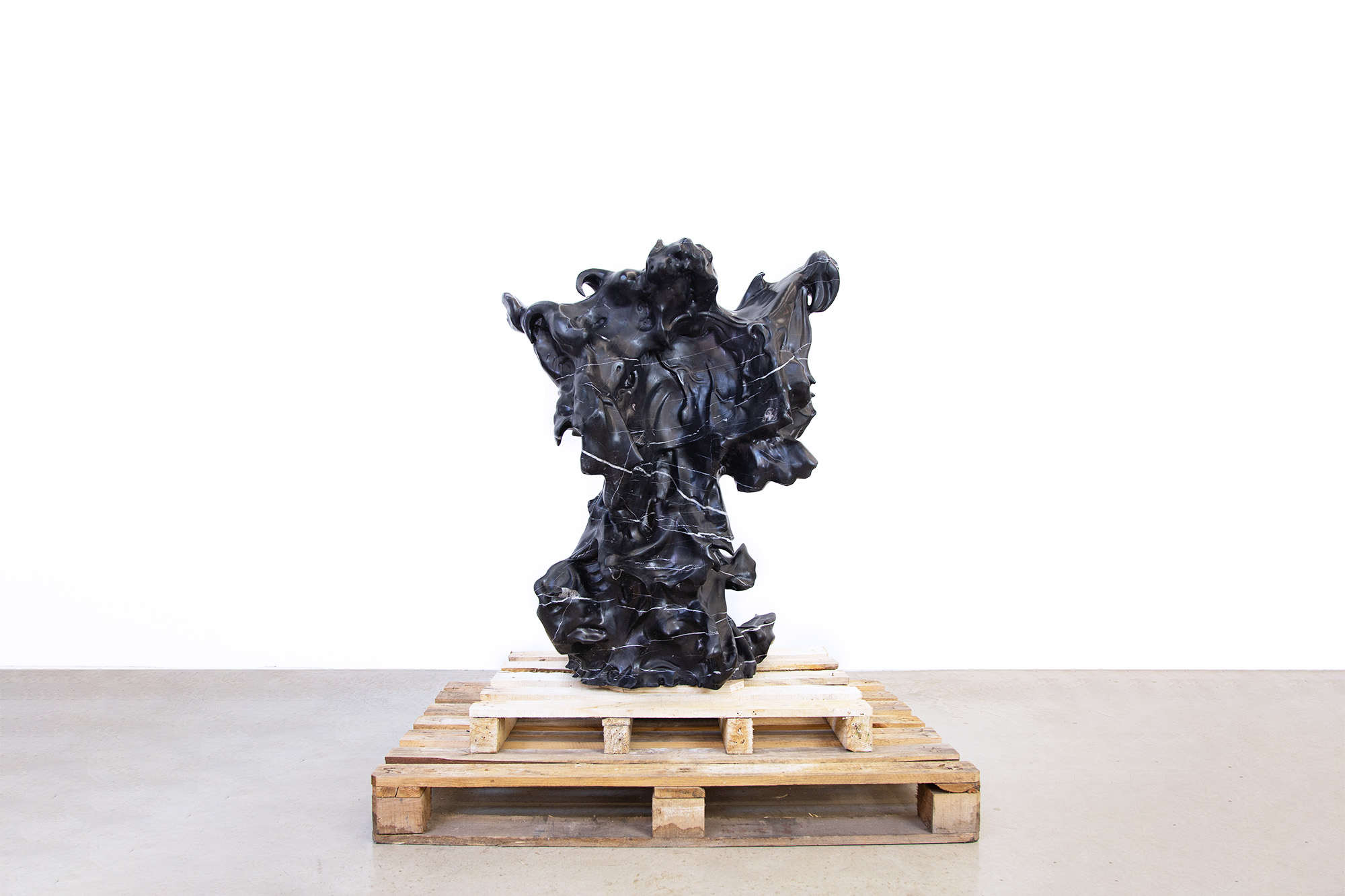 Mauro’s participation and unveiling of his new sculpture at the international level reinforces his ongoing collaboration with Prometeo Gallery. The gallery celebrates its 20th year anniversary with one of the major stands of 100 square metres, a majestic exhibition of their top artists. At Artissima 2024, the inscriptions on canvas series were a star in the show. Mauro wants to continue surprising art enthusiasts this year by revealing his newest marble sculpture to date, A Spectre is Haunting Europe. Realised through black marble the artwork shapeshifts between that of a figure and a baroque three dimensional interpretation, casting a shadow on it’s counterpart.
